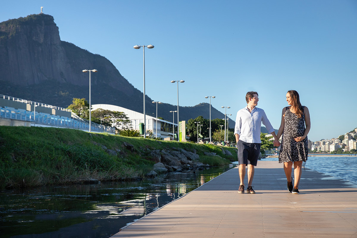 A luz da manhã na Lagoa deixou tudo ainda mais mágico, e a felicidade deles estava estampada no rosto.