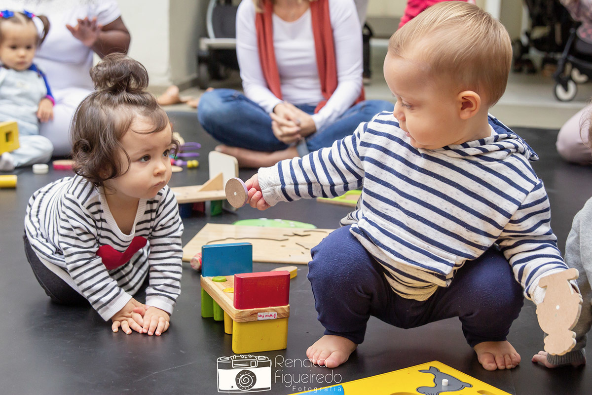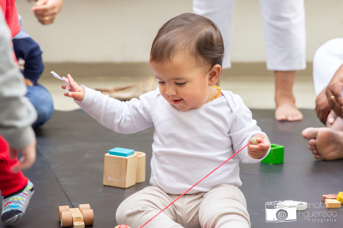 Nessa roda de alegria, as crianças exploraram brinquedos de madeira e tecidos, mergulhando em um mundo de diversão e aprendizado.