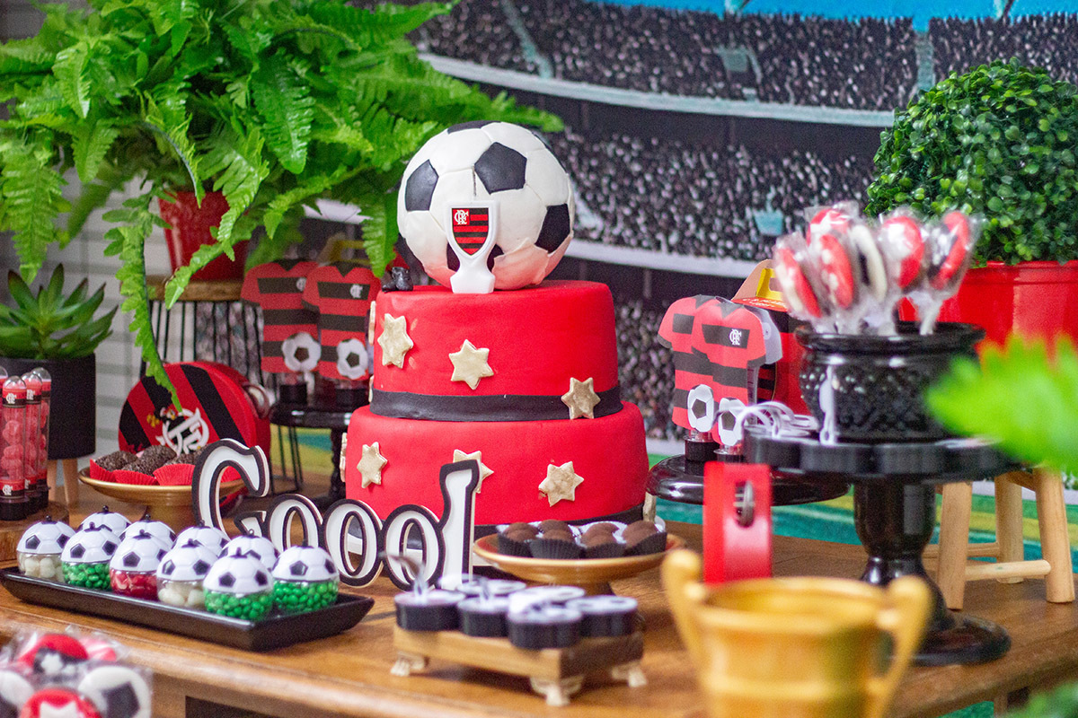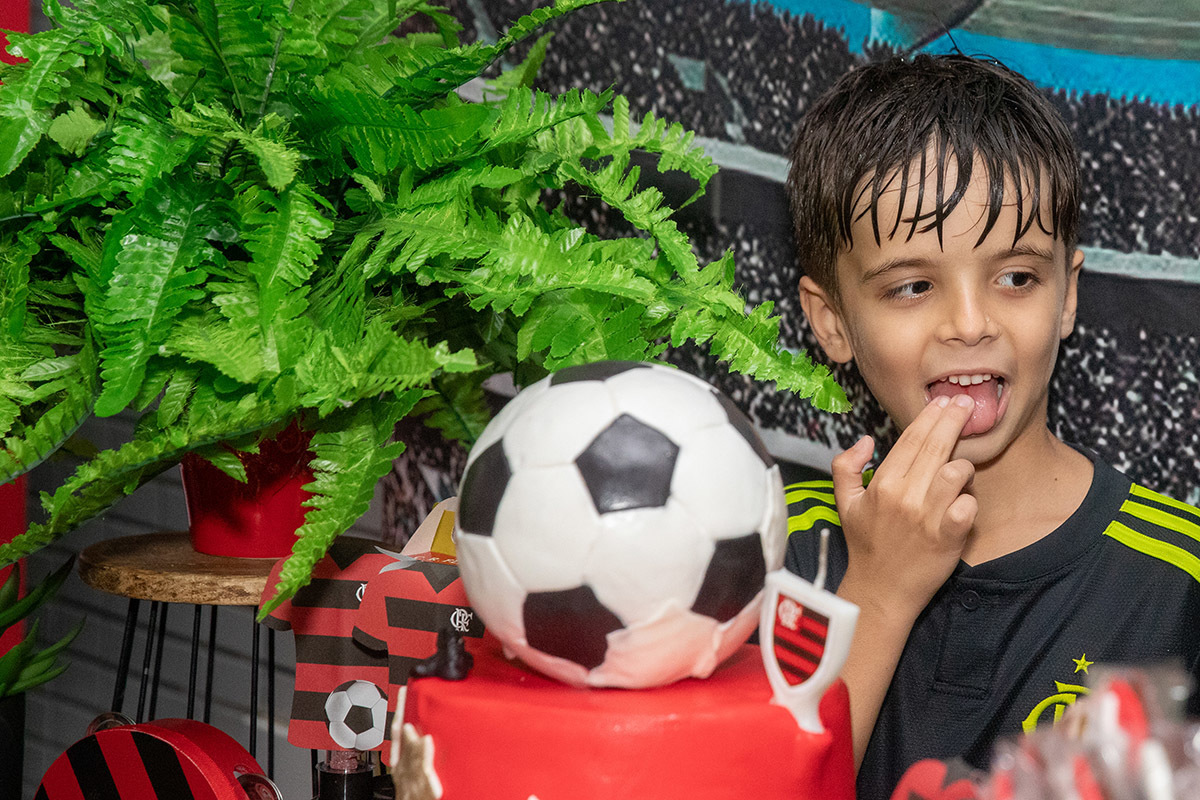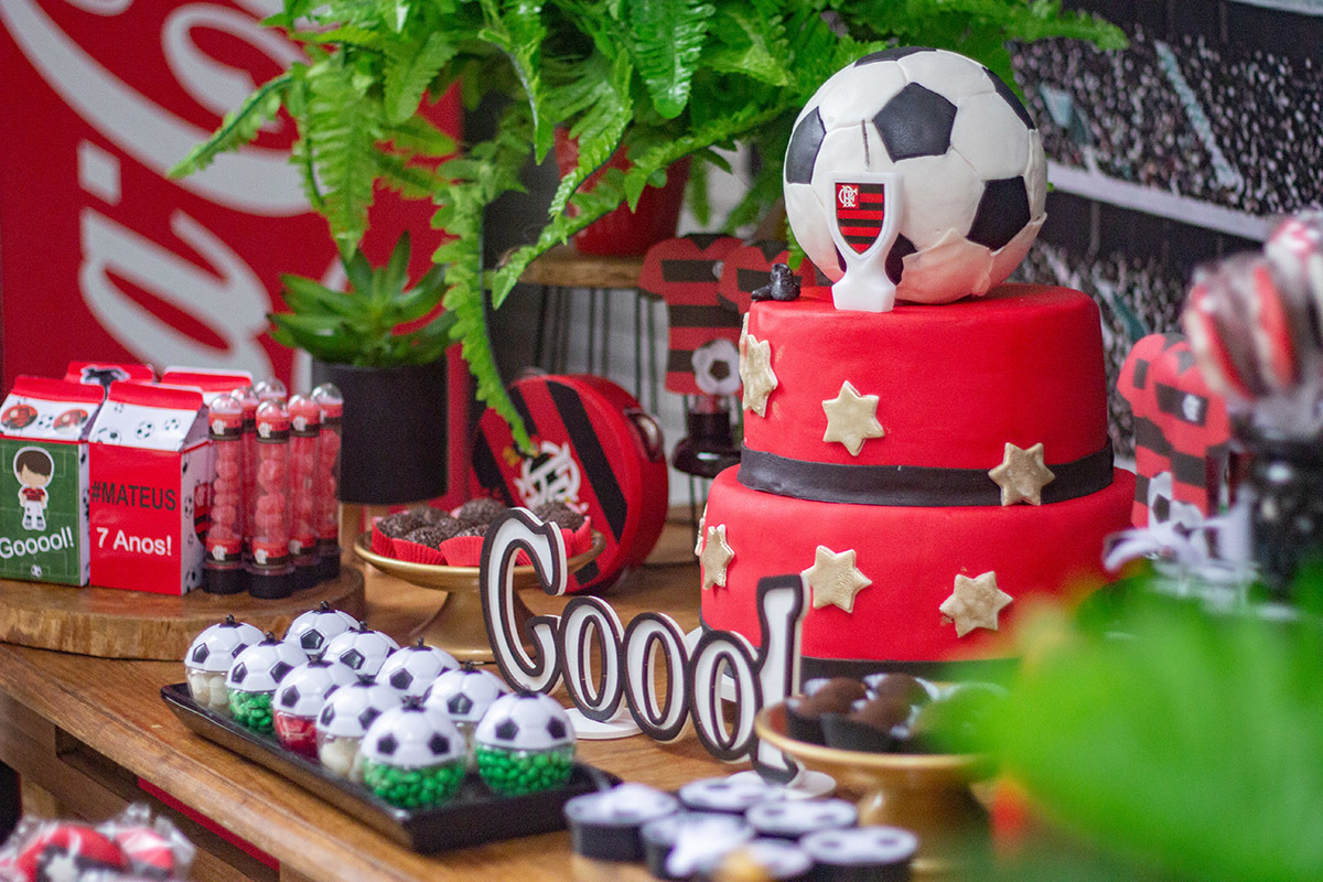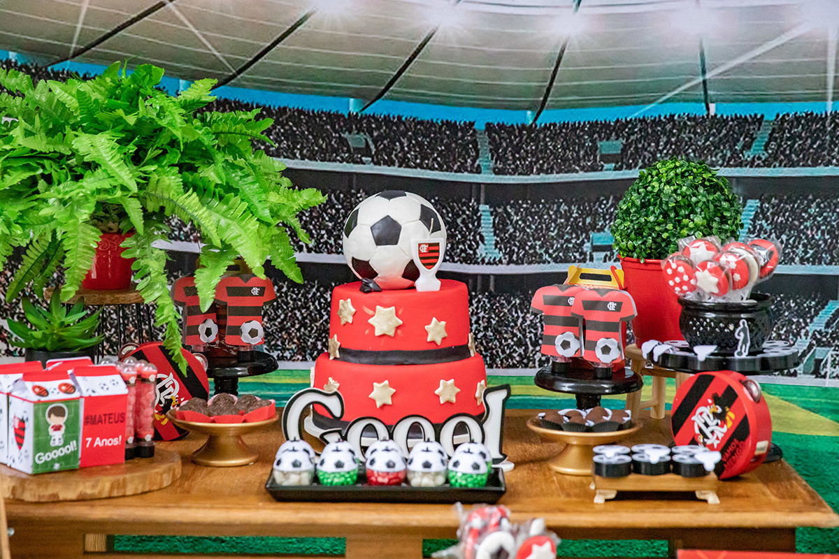 A decoração caprichada, idealizada pela dedicada mãe, Fernanda, era uma homenagem ao time do coração do Mateus.