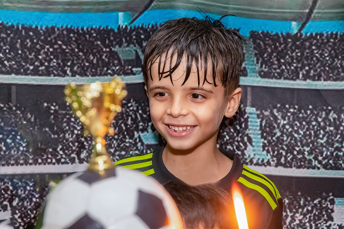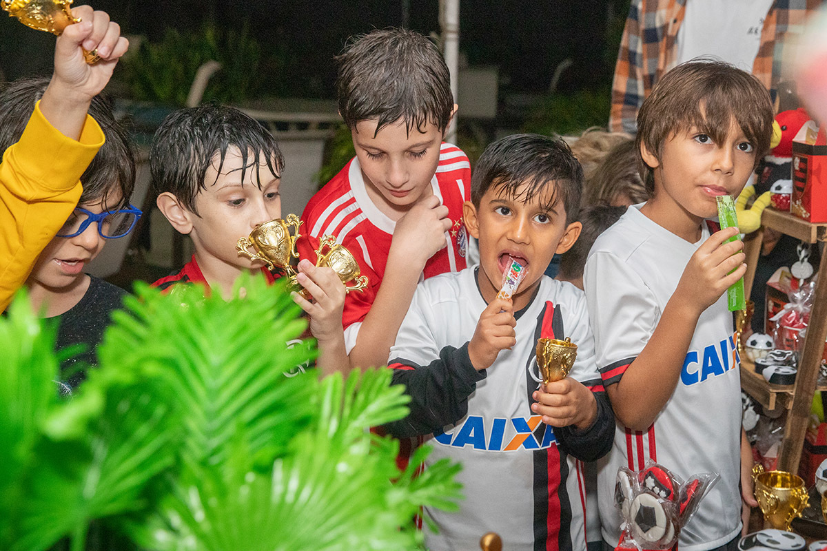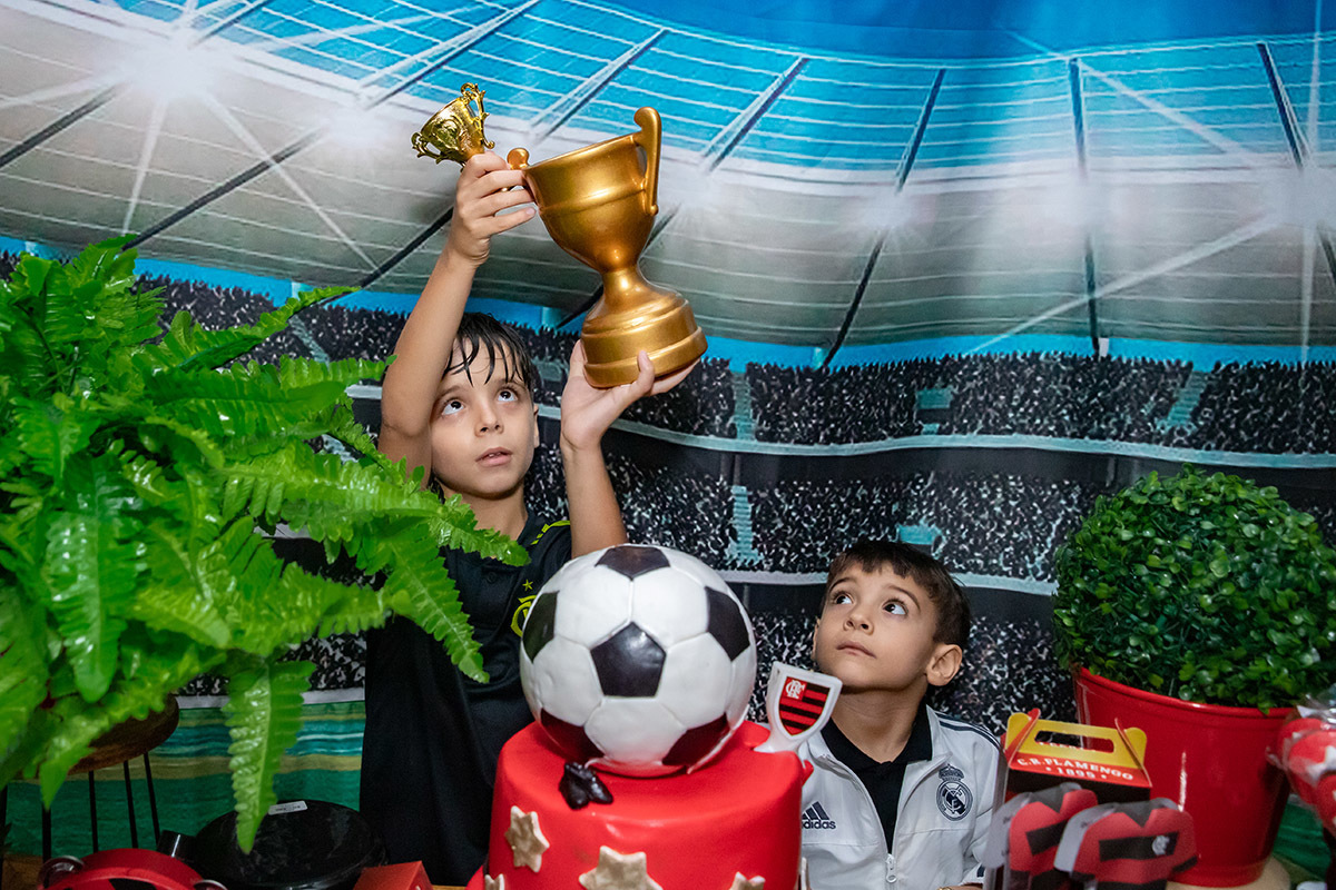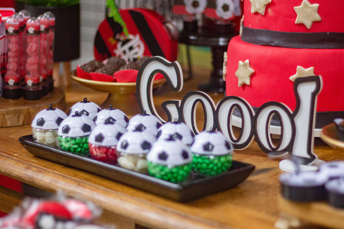 A decoração caprichada, idealizada pela dedicada mãe, Fernanda, era uma homenagem ao time do coração do Mateus.