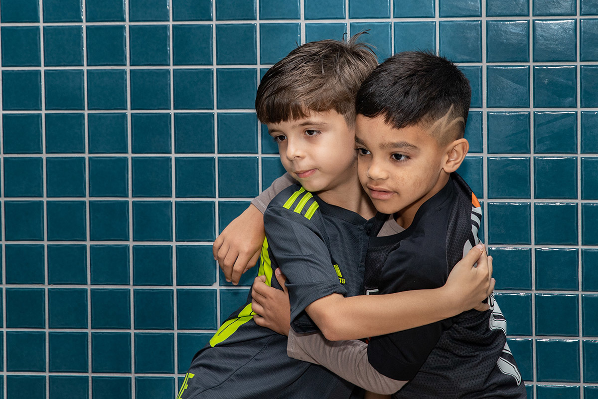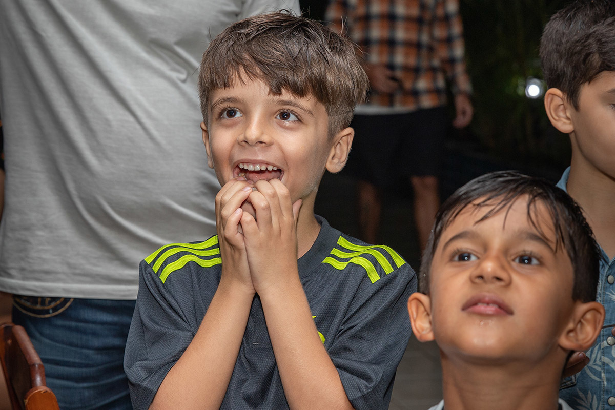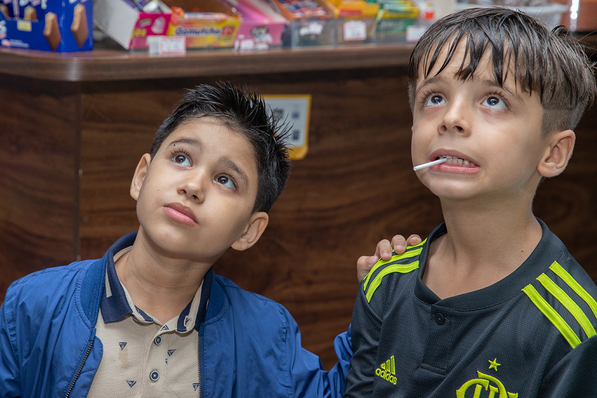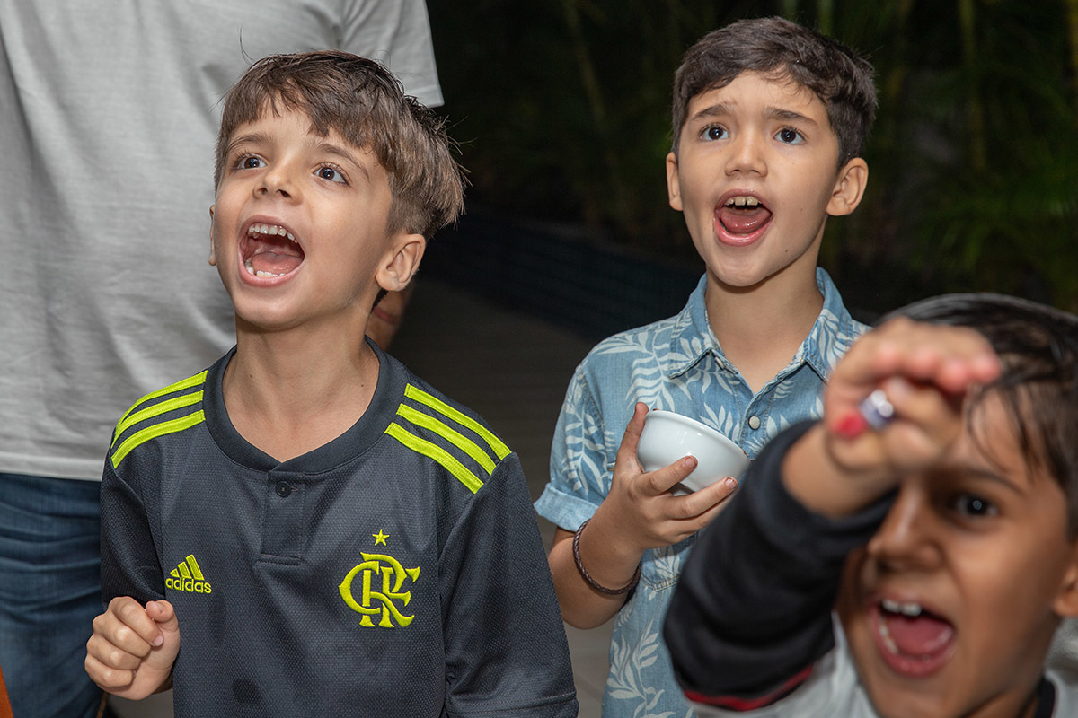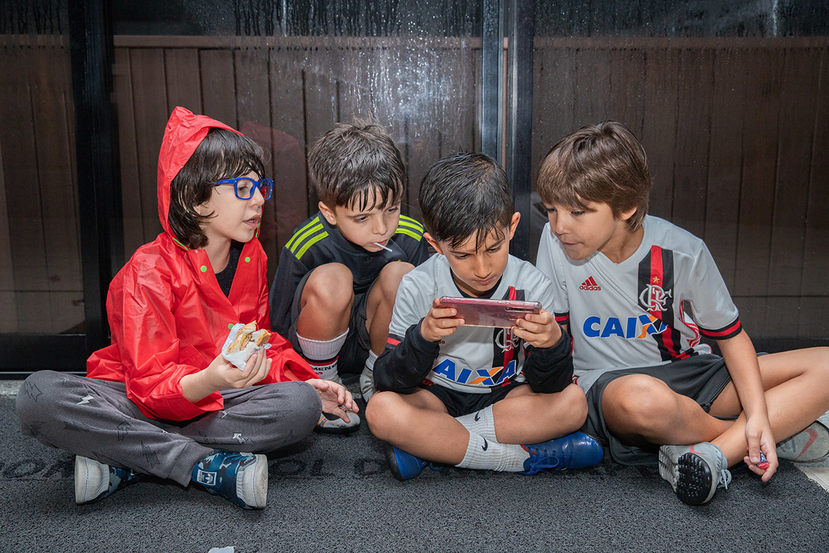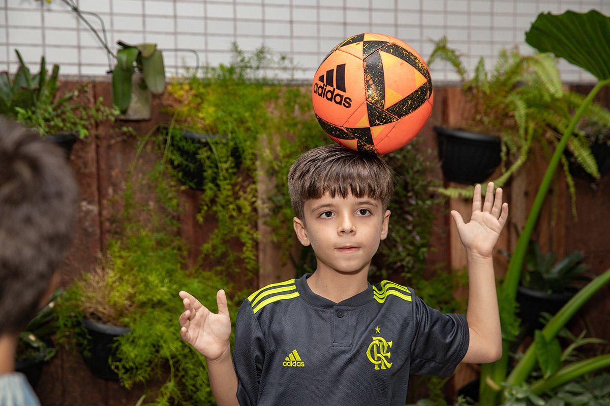 As crianças brincaram, jogaram bola e vibraram ao assistir ao jogo do Flamengo.