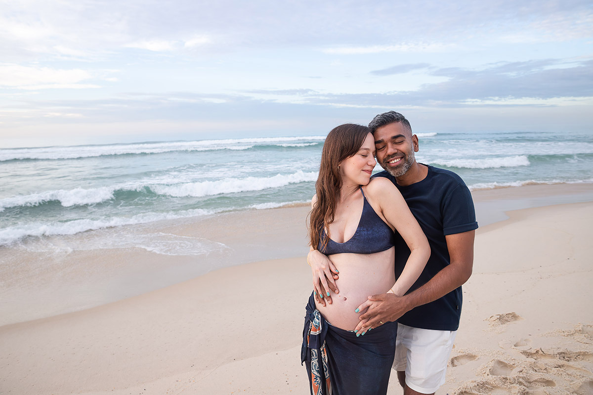 If you are planning a babymoon in Rio de Janeiro and would like to document this moment in a natural and relaxed way, a sunrise maternity photoshoot on the beach can be a beautiful experience.